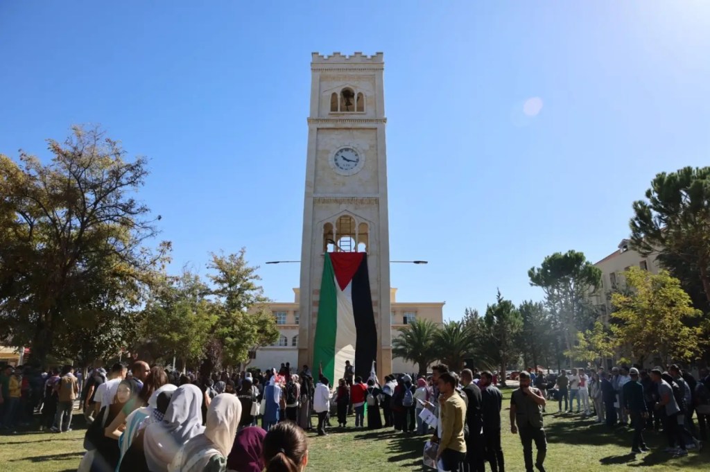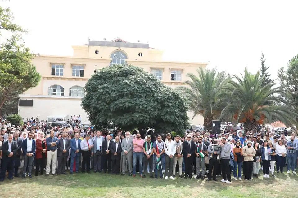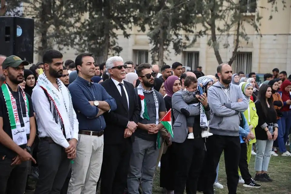 ولقد نظمت جامعتنا عدة وقفات ومظاهرات تنديدا بما يحدث على الأراضي الفلسطينية المقدسة، شارك فيه طلابنا ومدرسينا والطاقم الاداري، اجتمعنا كلنا تحت علم فلسطين الحبيبة. وقام الدكتور وسيم أبو ياسين عميد كلية التربية بالقاء كلمة بهذه المناسبة بتاريخ 11/10/2023